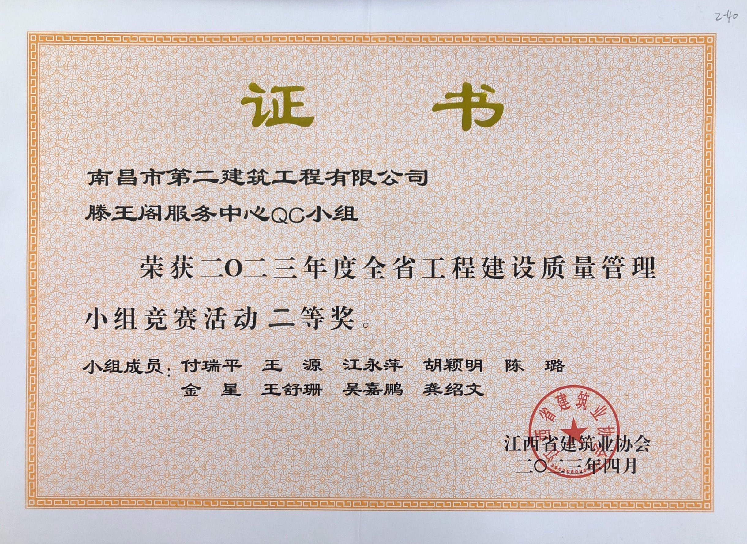 公司QC活動(dòng)成果榮獲2023年江西省工程建設(shè)質(zhì)量管理小組競(jìng)賽活動(dòng)二等獎(jiǎng)