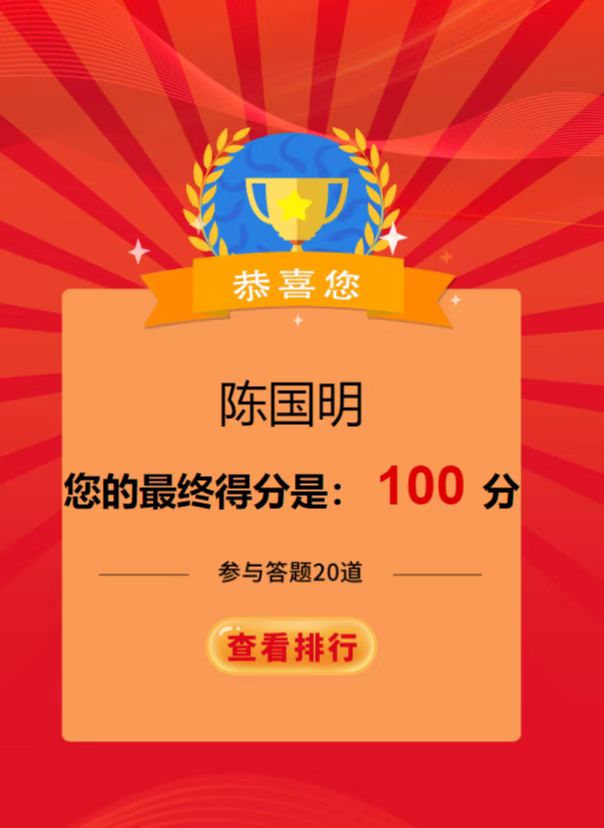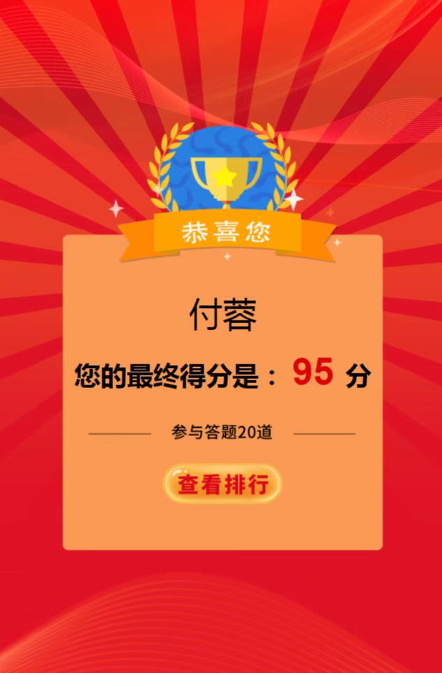 該競(jìng)是以“傳承紅色基因 守牢紀(jì)法底線”為主題,通過線上學(xué)習(xí),線上答題的形式,以考促學(xué),以考驗(yàn)效,營造了學(xué)習(xí)“”的濃厚氛圍,重點(diǎn)教育黨員干部深刻認(rèn)識(shí)“兩個(gè)確立”的決定性意義,增強(qiáng)“四個(gè)意識(shí)”、堅(jiān)定“四個(gè)自信”、做到“兩個(gè)維護(hù)”。同時(shí),把答題活動(dòng)作為加強(qiáng)黨員干部紀(jì)法教育的重要載體進(jìn)行落實(shí),激發(fā)黨員干部學(xué)習(xí)紀(jì)法知識(shí)的積極性、主動(dòng)性,牢固樹立紀(jì)法意識(shí),自覺嚴(yán)守紀(jì)律規(guī)矩、不逾紀(jì)法底線,廉潔從政從業(yè)、規(guī)范行權(quán)用權(quán)。