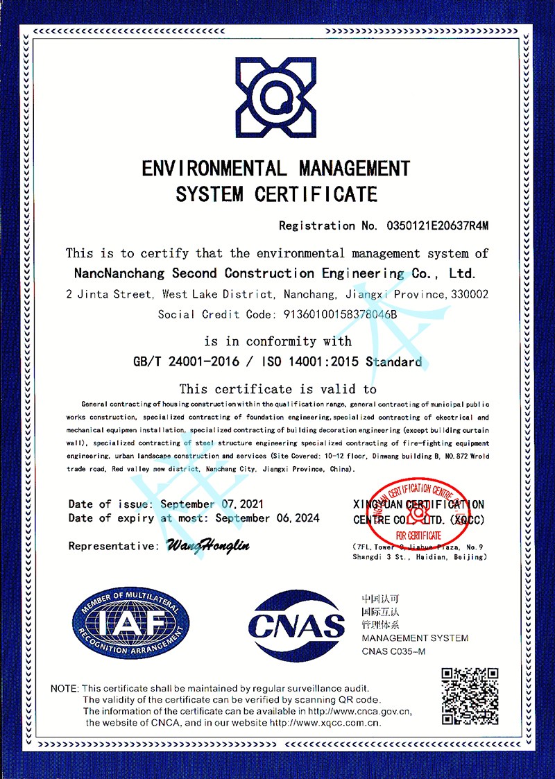 環(huán)境管理體系認證證書